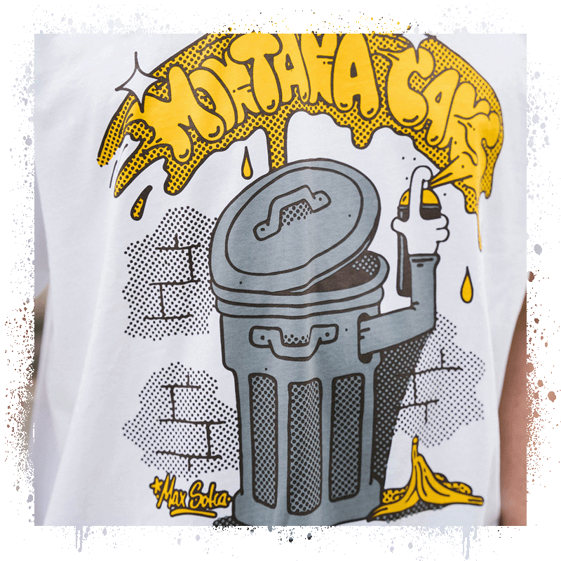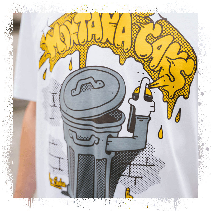 Das neue Montana-T-Shirt „Trash Can“ wurde von Max Solca aus Schweden entworfen, der sich mit seinen brillanten und schlichten Kreationen schnell einen Namen in der Graffiti-Welt macht.